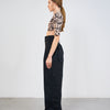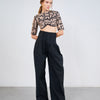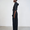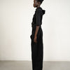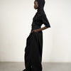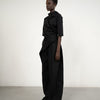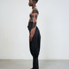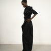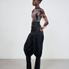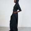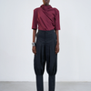 Tailored in a dense cotton blend that holds form, these trousers draw inspiration from the Lebanese sharwāl, reimagined with sculptural restraint. The volume is concentrated at the knee, tapering into a sharp, narrow ankle for a refined, elongated silhouette. In black, the shape becomes graphic and architectural confident, minimal, and instantly iconic. A foundation piece with profound presence.