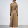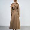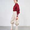 Cut in a structured cotton blend, these wide-leg trousers are defined by an architectural wrap belt that can be positioned and tied to sculpt the waist. The pleated volume at the hip tapers cleanly into a long, straight leg, creating a silhouette that feels precise yet fluid. In deep maroon, sandy beige, or black, the shape becomes warm, modern, and assured, an intelligent expression of tailoring with movement built into the form.